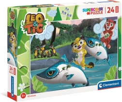 Descoperiți puzzle-ul distractiv pentru copii cu motivul LEO ȘI TIG în format extra mare MAXI. Jocul cu 24 de piese mari este ideal pentru cei mici, susține motricitatea fină, gândirea logică și percepția culorilor. După asamblare, formează o imagine de aprox. 62 × 42 cm cu culori vii și eroi animali voioși.