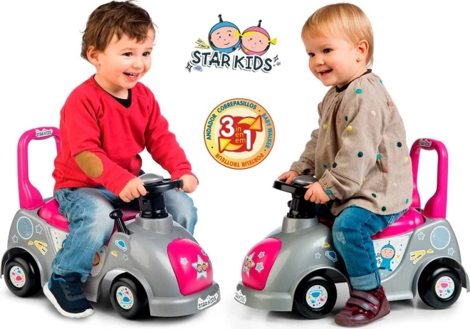 Căutați primul vehicul pentru micuțul vostru? Trotineta fără pedale 3 în 1 Star Kids roz crește odată cu copilul – la început ajută ca antepremergător pentru primii pași, apoi ca trotinetă fără pedale stabilă pentru dezvoltarea echilibrului și a siguranței mișcării. Datorită dimensiunilor compacte, este perfectă atât pentru apartament, cât și pentru plimbări.
