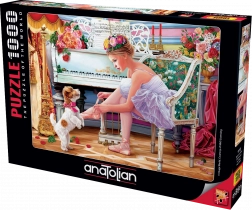 Bucurați-vă de asamblarea minunatului puzzle Balerină și cățelușul ei cu 1000 de piese de la brandul Anatolian. Pachetul include un suport practic unde puteți plasa capacul cutiei ca model și astfel să simplificați asamblarea.