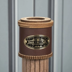 Tubul din lemn cu bandă de piele și plăcuță metalică oferă modelului un aspect vintage care va înfrumuseța orice interior.
