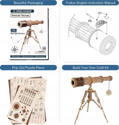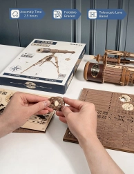 Asamblați propriul model de telescoapă din lemn din seria ROBOTIME Rokr Curious Discovery, pe care îl puteți utiliza cu sau fără trepied. Acest model este nu numai un element decorativ frumos, dar și susține dezvoltarea abilităților motorii fine și imaginației.