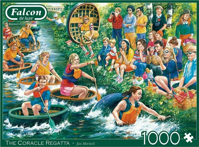 Scufundă-te în atmosfera peisajelor acvatice britanice cu puzzle-ul FALCON „Regata cu coracle”. Bărcile tradiționale ușoare coracle (în română coracle) conferă motivului un farmec istoric unic. Datorită celor 1000 de piese tăiate cu grijă, asamblarea este cursivă și satisfăcătoare – ideală pentru avansați și pentru începători răbdători.