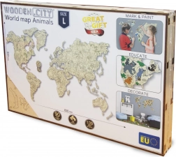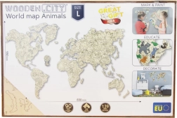Harta mondială cu animale din lemn este soluția ideală pentru iubitorii de călătorii, dar și ca mijloc educativ pentru copii. Ajută la dezvoltarea interesului pentru geografie și zoologie și permite copiilor să coloreze locurile vizitate alături de familie, folosind culori acrilice.