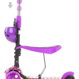 - Trotinetă pentru copii 3‑în‑1 cu tijă de ghidare și șa