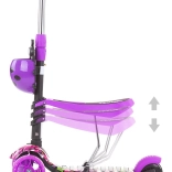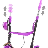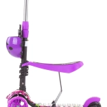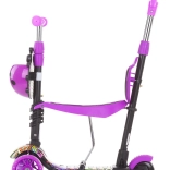 Trotinetă multifuncțională pentru copii 3‑în‑1, ce poate fi folosită ca împingător cu șa, cu tijă de ghidare sau ca trotinetă clasică. Oferă un șasiu stabil cu trei roți, iluminare LED la roțile din față, ghidon și șa reglabilă și elemente antiderapante pentru distracție în siguranță. Include și un coș frontal de depozitare pentru mărunțișuri.