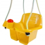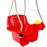 Leagăn tip găleată sigur pentru cei mici, cu scaun adânc, spătar înalt și bară frontală pentru o poziție stabilă. Plastic rezistent cu frânghie suspendată robustă, potrivit atât pentru interior, cât și pentru grădină. Include și un buton/claxon distractiv care îi va încânta pe cei mici.