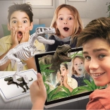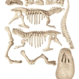 Urmează instrucțiunile în timpul descoperirii; în text vei afla mai multe despre fosile, formarea lor și despre reptilele preistorice. Scheletul – fosilă din material fluorescent – absoarbe lumina zilei și apoi strălucește în întuneric.