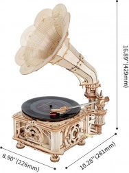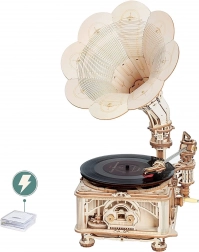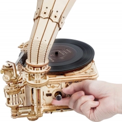 Pachetul include materialul pentru asamblarea modelului și un disc de vinil cu trei melodii pentru o experiență completă.