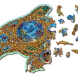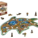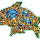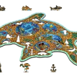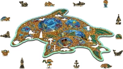 Răsfață-te cu o distracție originală cu puzzle-ul din lemn în forma unui delfin, inspirat de lumea subacvatică. Datorită pieselor special conturate – dintre care o parte au forma viețuitoarelor marine – asamblarea este vizual atractivă și totodată mai solicitantă decât la puzzle-urile clasice. Detaliile evidențiate cu laser conferă profunzime motivului, iar unele piese pot fi așezate în picioare ca mici figurine.