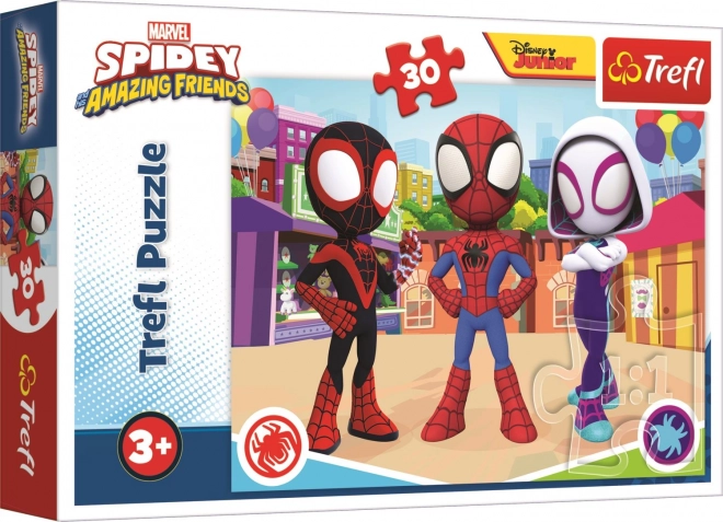 Puzzle pentru copii cu motivul SPIDEY și prietenii lui, conține 30 de piese și, după asamblare, formează o imagine de 20 × 27 cm. Fabricat din materiale de calitate și ecologice, cu hârtie calandrată pentru reflexii reduse și asamblare mai ușoară. Ideal pentru micii fani Marvel.