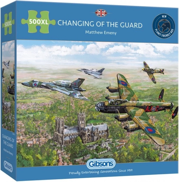 Afundă-te în istoria forțelor aeriene britanice cu acest puzzle unic Schimbarea gărzii. Conține 500 de piese și surprinde momentul când avioanele celebre ale RAF zboară deasupra iconicei catedrale din Lincoln.