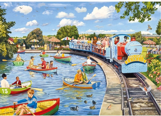 Aceste puzzle-uri aduc atmosfera viu colorată a destinațiilor clasice de vacanță, cu tot ce include de la parcuri de distracții la colțuri vesele de plajă.