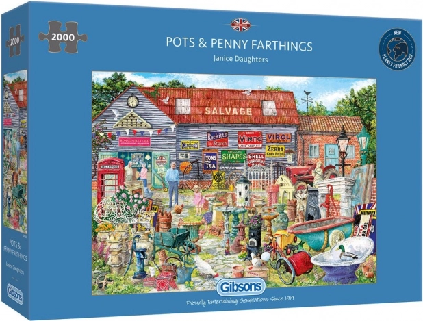 Descoperă farmecul nostalgiei cu puzzle-ul mare de la Gibsons – Oale și vechituri pe bani mărunți cu 2000 de piese. Te așteaptă o scenă ilustrată în detaliu dintr-o curte plină de comori, care va încânta iubitorii de antichități și pe pasionații exigenți de puzzle-uri. Include poster cu modelul, iar după asamblare rezultă o imagine de calitate, de mari dimensiuni, de 98 × 68 cm.