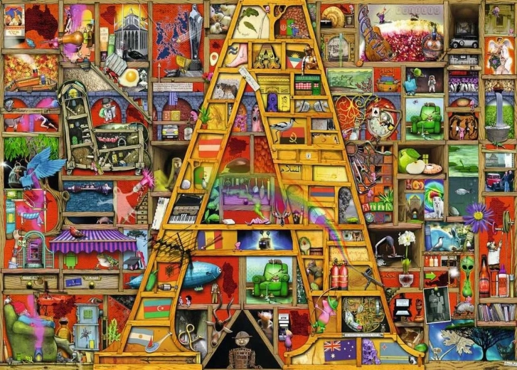 Descoperiți lumea captivantă a literelor cu puzzle-ul Ravensburger Abeceda uimitoare - Litera A de 1000 de piese. Această piesă unică de artă, creată de artistul Colin Thompson, oferă o aventură vizuală printre cuvintele englezești care încep cu litera „A”.