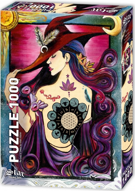 Bucurați-vă de ore de distracție cu acest puzzle captivant cu tema Doamna zodiacului, care conține