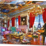 Un interior bogat ornamentat, cu vedere la Turnul Eiffel, oferă o atmosferă unică și o scenă vizuală bogată, care încântă în timpul asamblării și arată excelent și după înrămare.