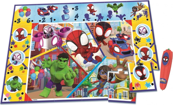 CLEMENTONI Puzzle de podea cu stilou interactiv Spidey și prietenii lui uimitori 24 de piese