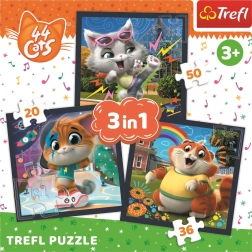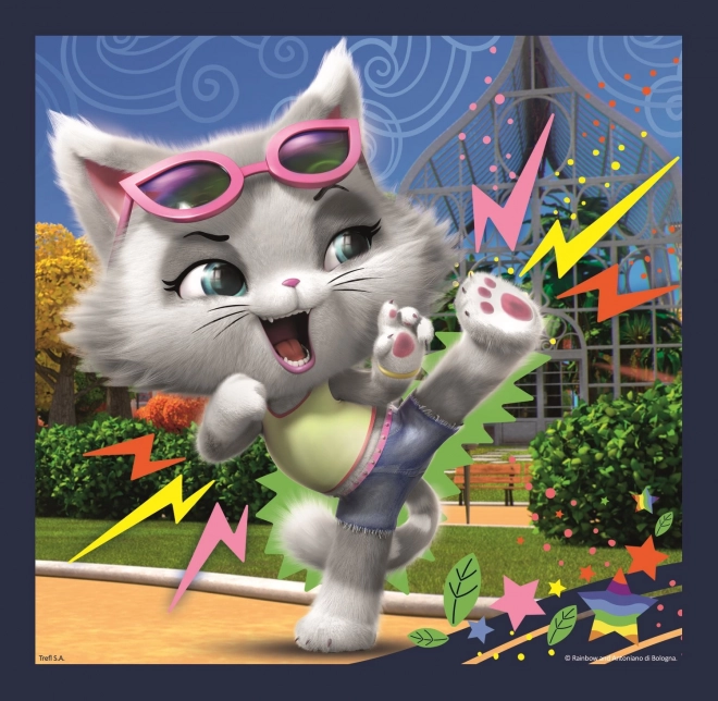 Descoperă farmecul puzzle-urilor cu eroii din popularul desen animat 44 CATS. Setul conține trei puzzle-uri diferite, prin care copiii își antrenează motricitatea fină, atenția la detalii și răbdarea. Numărul variat de piese permite adaptarea dificultății în funcție de vârsta și experiența copilului.