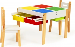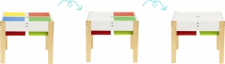 Două părți detașabile ale blatului oferă o suprafață netedă pentru desen și plăci colorate potrivite pentru cuburi. Adaptați cu ușurință masa pentru jocuri diferite în același timp.