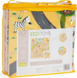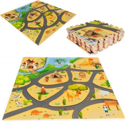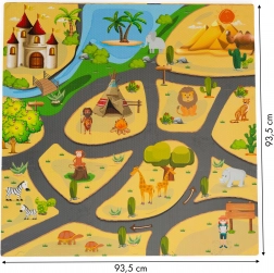 Salteaua din spumă pentru copii cu motiv safari este o soluție excelentă pentru orice cameră. Cele nouă piese mari, cu grafică veselă cu animăluțe, creează o suprafață moale și sigură pentru joacă și relaxare. Datorită asamblării tip puzzle, ajustezi dimensiunea și forma în funcție de spațiu – de la pătrat la trasee extinse.