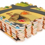 Salteaua colorată din spumă pentru copii, cu motiv safari, creează un spațiu sigur și jucăuș pentru distracția zilnică. Piesele se îmbină ca un puzzle, astfel încât poți crea ușor orice formă. Este realizată din material certificat EVA, are o textură antiderapantă și o grosime plăcută de 0,9 cm, care atenuează căderile și izolează de frig. Se curăță ușor – este suficient să o ștergi cu o cârpă umedă, este sigură pentru copii și ideală pentru joacă, târâre și primii pași.