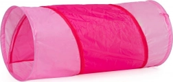 Cort de joacă pentru copii cu tunel, cu motiv de căsuță roz.