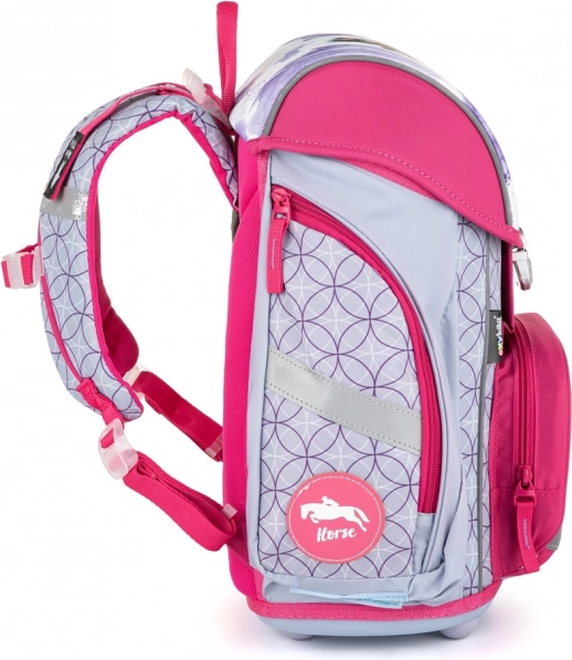 Acest ghiozdan școlar din gama Premium, cu îndrăgitul motiv de cal, este conceput pentru confort maxim și pentru o postură corectă a celor mici. Spatele anatomic cu întăritură internă își păstrează forma, iar împreună cu căptușeala respirabilă și bretelele late, căptușite asigură o distribuire confortabilă și uniformă a greutății.