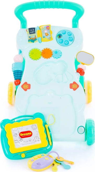 Accesoriile detașabile, precum cheile cu telecomandă și tabla de desen, pot fi folosite și separat. Mersul este ușor, confortabil și simplu de manevrat. Roțile din spate cu strat antiderapant din silicon și posibilitatea de reglare a vitezei de deplasare cu ajutorul unei șurubelnițe sporesc siguranța și confortul.