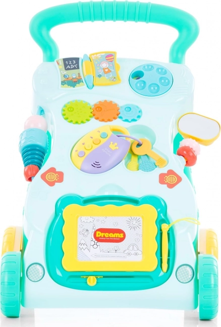 Mersul interactiv CHIPOLINO Funny îi ajută pe copii să își dezvolte cu încredere mersul, echilibrul și coordonarea. Datorită culorilor vii, efectelor luminoase și melodiilor, stimulează creativitatea și percepția senzorială. Jucăriile detașabile și tabla de desen asigură distracție îndelungată și învățare prin joc.