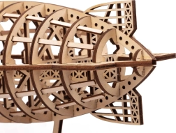 Piese tăiate cu precizie, care după asamblare formează un model realist de dirijabil.