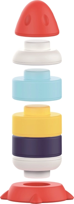 O apăsare a butonului roșu pornește melodii vesele și efecte luminoase. Două niveluri de volum asigură un joc plăcut în orice mediu.