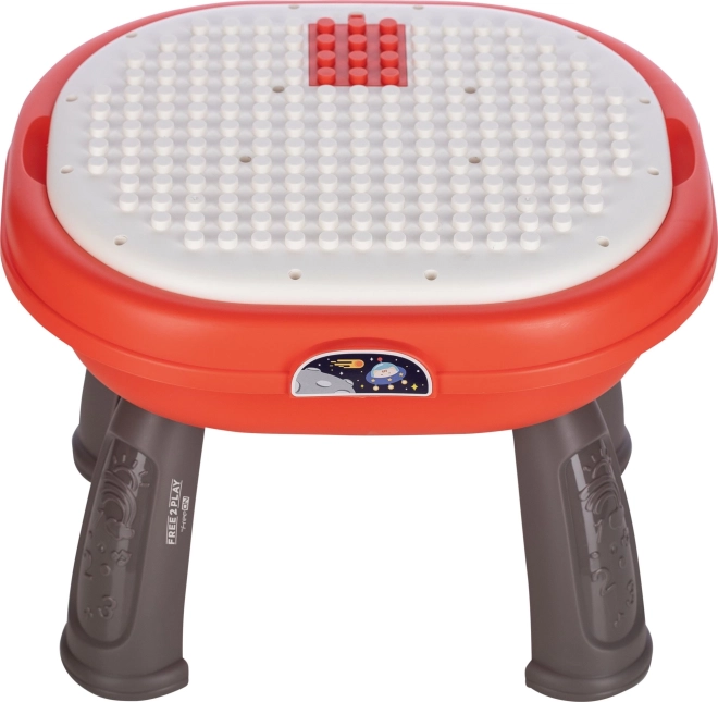 Freeon Free2Play Fun este o măsuță interactivă multifuncțională concepută pentru descoperire veselă. Activarea printr-un singur buton roșu pornește melodii vesele și efecte luminoase intermitente, care îi motivează pe copii să se joace și să exploreze. Panoul de joc rotativ oferă pe o parte elemente interactive, iar pe cealaltă o bază practică compatibilă cu cuburi de construcție de tip lego.
