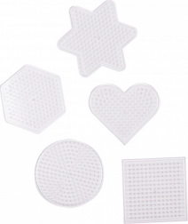 Descoperă activități amuzante și creative cu setul de plăci transparente PLAYBOX pentru mărgele termofixabile. Cinci forme de bază – pătrat, cerc, inimă, stea și hexagon – oferă posibilități variate pentru compoziții simple sau mai complexe. Materialul transparent permite folosirea ușoară a șabloanelor, astfel încât copiii pot copia precis modelele și își pot dezvolta motricitatea fină și răbdarea.
