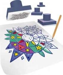 - Set complet: Conține 4 ștampile, tampon, creion curcubeu și un bloc pentru creație imediată.