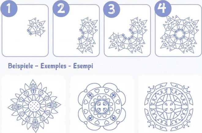 Set creativ în cutie de tablă pentru realizarea ușoară a mandalelor. Pur și simplu ștampilați și colorați, combinați modele și descoperiți-vă creativitatea.
