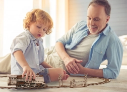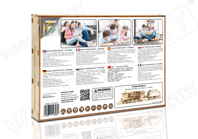 WOODEN CITY puzzle 3D șine circulare cu trecere la nivel oferă o experiență unică de modelism și joacă. Datorită mecanicii bine gândite și lemnului de calitate, ia naștere o cale ferată funcțională la scară 1:40, pe care poți schimba direcția de mers folosind trecerea la nivel. Asamblarea este distractivă și educativă – vei înțelege cum colaborează transmisiile, roțile dințate și motorul pe elastic.