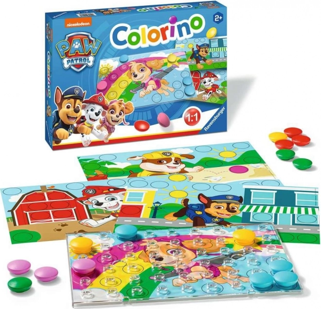 Îndrăgitul joc Ravensburger Colorino cu tematica Patrula Cățelușilor îi învață pe copii să recunoască culorile, dezvoltă motricitatea fină și stimulează creativitatea. Nasturii extra-mari se fixează ușor pe placa transparentă, iar copiii pot alege dintre șabloane color și alb-negru – după model sau după propria imaginație.