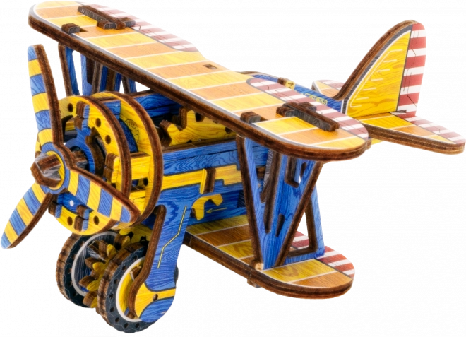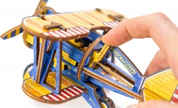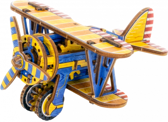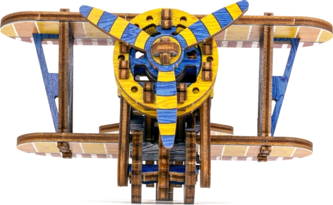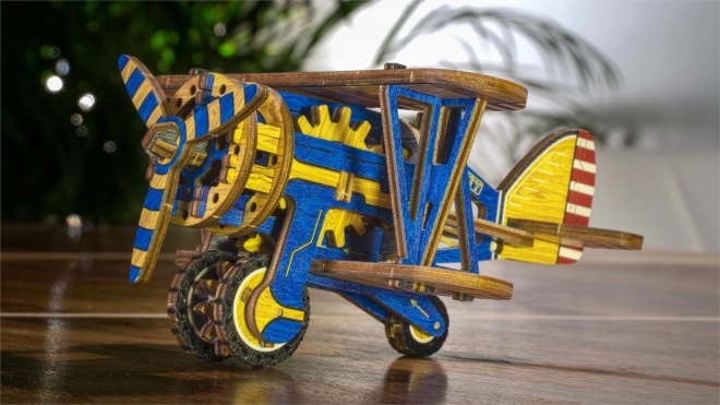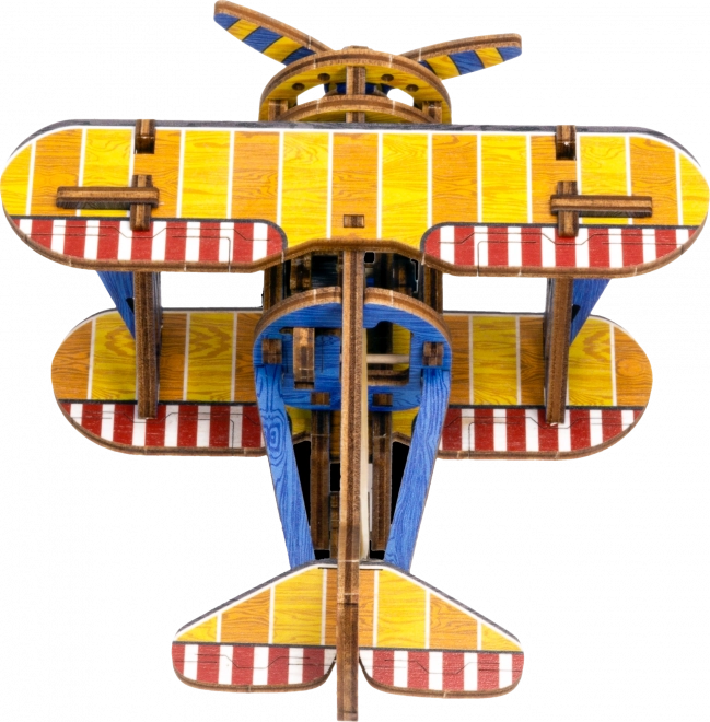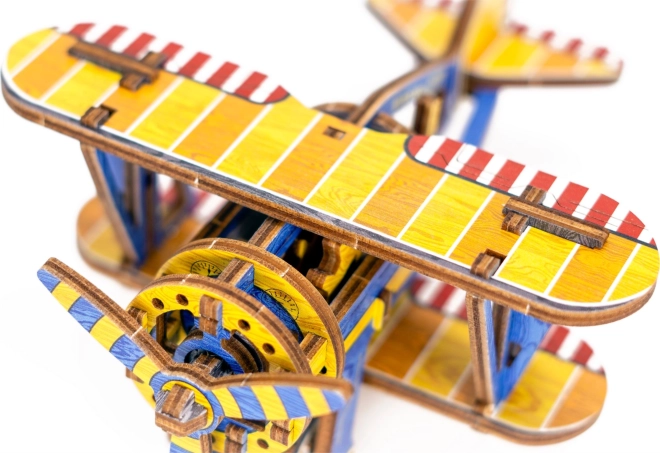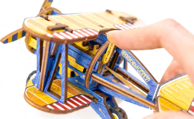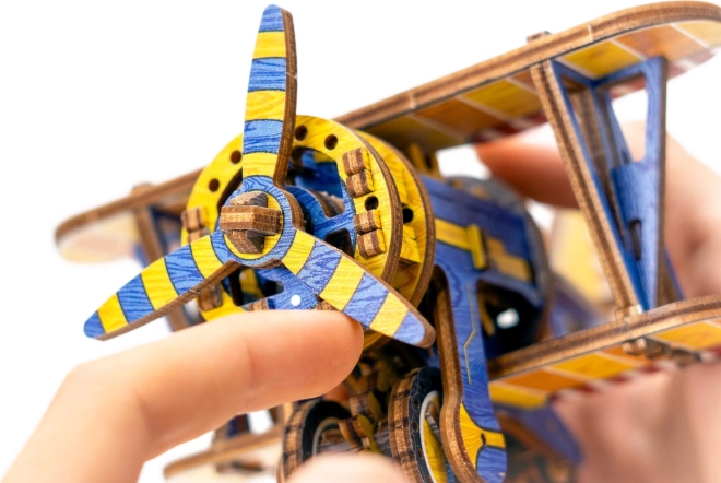 Ediția limitată a puzzle-ului 3D WOODEN CITY Biplan îmbină plăcerea asamblării cu funcții mecanice reale. Datorită motorului cu bandă de cauciuc cu elice ce se înfășoară și volantului, modelul chiar pornește după finalizare. Elementele colorate realizate prin imprimare UV de înaltă precizie subliniază aspectul retro și caracterul de colecție al modelului.