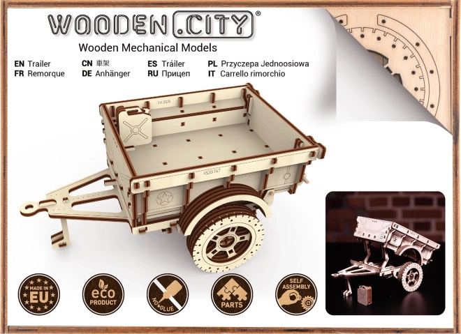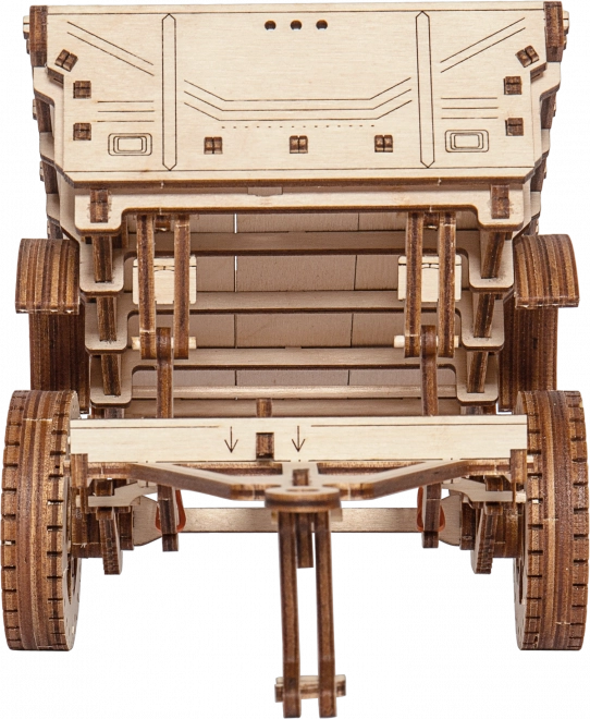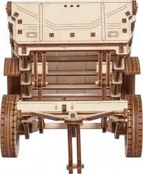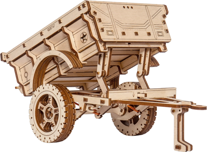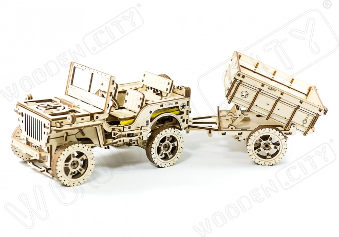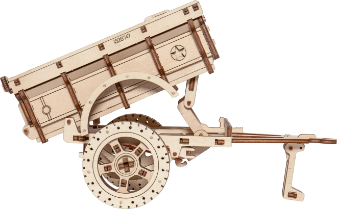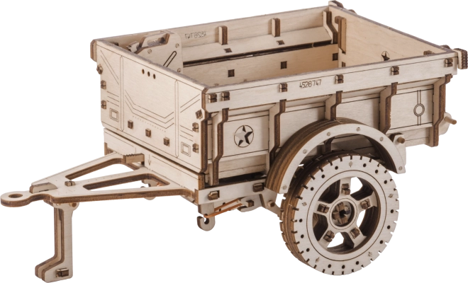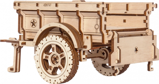 Remorca militară WOODEN CITY este un puzzle mecanic din lemn, stilat, care va încânta orice pasionat de tehnică și modelism. Datorită decupajului laser precis în placaj de mesteacăn, piesele se îmbină perfect – asamblarea are loc fără adeziv și este curată, rapidă și distractivă. Rezultatul este un model decorativ impresionant, cu elemente funcționale, care completează excelent, de exemplu, o mașină din lemn de tip Jeep 4x4.