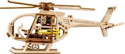 Elicopter din lemn funcțional, cu pale rotative, ce imită un model real.