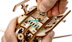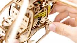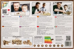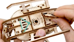 Fabricat din placaj de mesteacăn de calitate, modelul oferă o alternativă ecologică la jucăriile din plastic. Nu necesită lipici sau unelte, ceea ce îl face un proiect curat și prietenos cu mediul. Puzzle-ul din lemn include motoare cu elastic și roți dințate, datorită cărora modelul prinde viață.