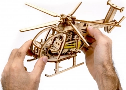 Bucură-te de o asamblare plăcută cu acest model mecanic funcțional, care impresionează prin nivelul de detaliu. Palele elicopterului se rotesc, datorită unui mecanism de întindere cu cheie specială. Acest model este o copie fidelă a unui elicopter real, remarcându-se în rândul altor seturi.