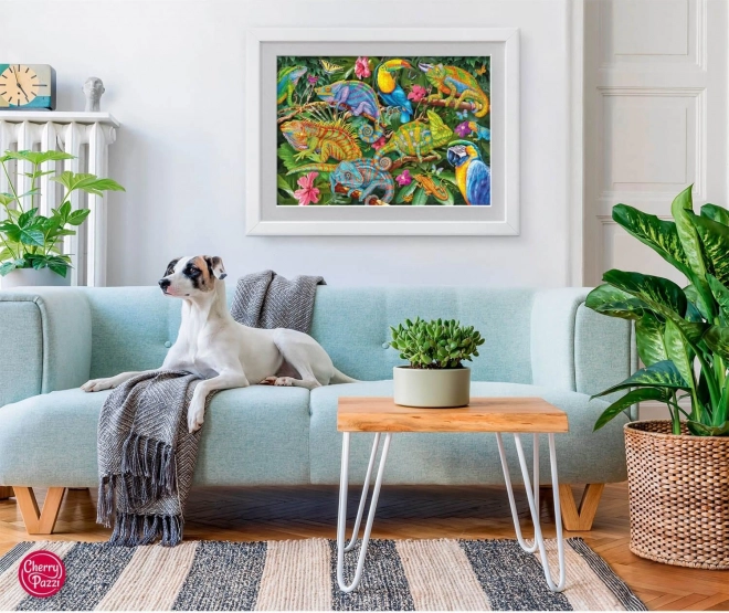 Acest puzzle frumos cu motiv de cameleoni este ideal pentru iubitorii de natură și asamblare. Datorită celor 2000 de piese, oferă o provocare pentru constructorii experimentați de puzzle. Puzzle-ul final asamblat are dimensiunile de 100 x 70 cm, un format suficient de mare pentru a evidenția fiecare detaliu al motivului. Intrați în lumea cameleonilor și bucurați-vă de ore de distracție și relaxare cu familia sau prietenii.