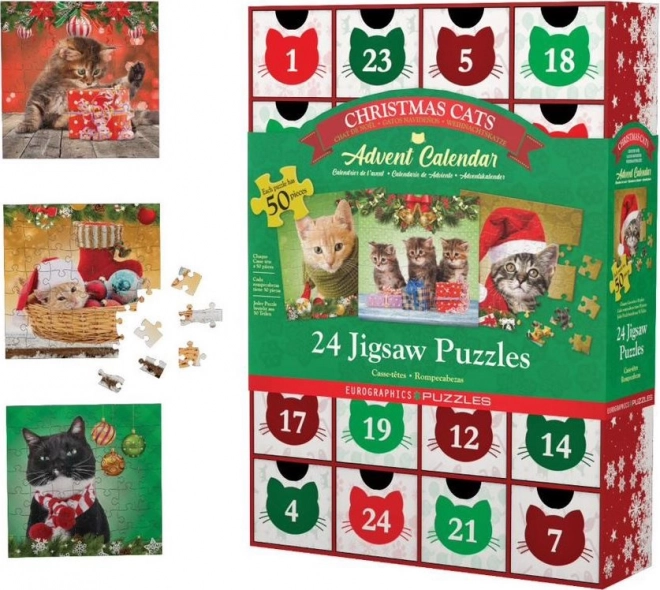 - 24 de mini puzzle-uri cu motivul pisici de Crăciun