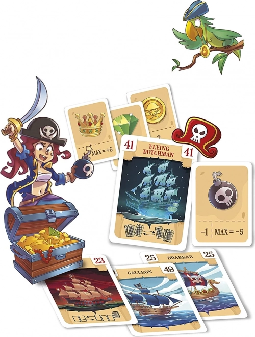 Intrați în lumea pirateriei cu un joc de cărți care aduce tonuri aventuroase și ludice cu personaje, comori și tematică de pirați.