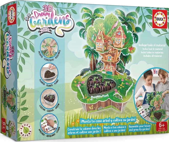Acest set jucăuș 2 în 1 îmbină asamblarea unei decorațiuni 3D cu o cultivare simplă. Copiii construiesc o casă pitorească în copac și plantează semințele în ghiveciul în formă de inimă, de care apoi vor avea grijă. În fiecare zi urmăresc micile progrese, creează povești și învață responsabilitatea și răbdarea.