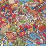 Eye-Spy Orașe Imaginare Roma Italia vă duce într-o lume nebunească și abstractă a Romei, unde totul este posibil. Încercați să dezvăluiți detalii ingenioase și locuri surprinzătoare. Din colecția Orașe Imaginare și Sneaky Peakers, ilustrațiile sunt extrem de detaliate și pline de umor.