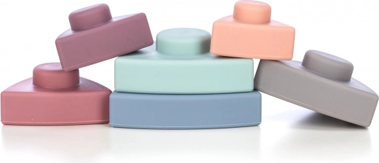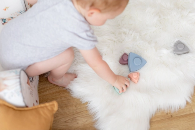 Acest turn de stivuire din silicon, cu triunghiuri, este o alegere excelentă pentru joaca plină de sens a celor mici. Piesele moi și plăcute se așază ușor una peste alta, susținând coordonarea mână-ochi, motricitatea fină și gândirea logică. Datorită culorilor pastelate plăcute, copiii disting în mod natural formele și culorile.