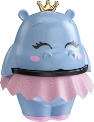 Cutia în forma unei balerine-hipopotam, cu coroniță aurie și fustiță roz din material textil, oferă machiajului o notă de basm și va înfrumuseța orice cameră de copii.