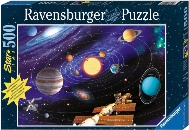 Acest puzzle strălucitor din colecția STAR LINE aduce imaginea Sistemului Solar la viață în întuneric datorită unei imprimări speciale neon. Calitatea înaltă a prelucrării și tehnologia Softclick Premium Puzzle garantează o experiență excelentă pentru fiecare piesă.